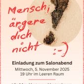 „Sein mit dem, was ist“ war gestern. Das Motto für den November-Salon lautet: „Mensch, ärgere Dich nicht!“ :-) Das Leben ist ein Spiel, bloss fühlt es sich leider nicht immer danach an. Also lasst uns einander erinnern, dass Heiterkeit noch den gröbsten Mist durchlichten kann. Komm in den Kreis, deine Mitte, deine Kraft. Lasst uns …